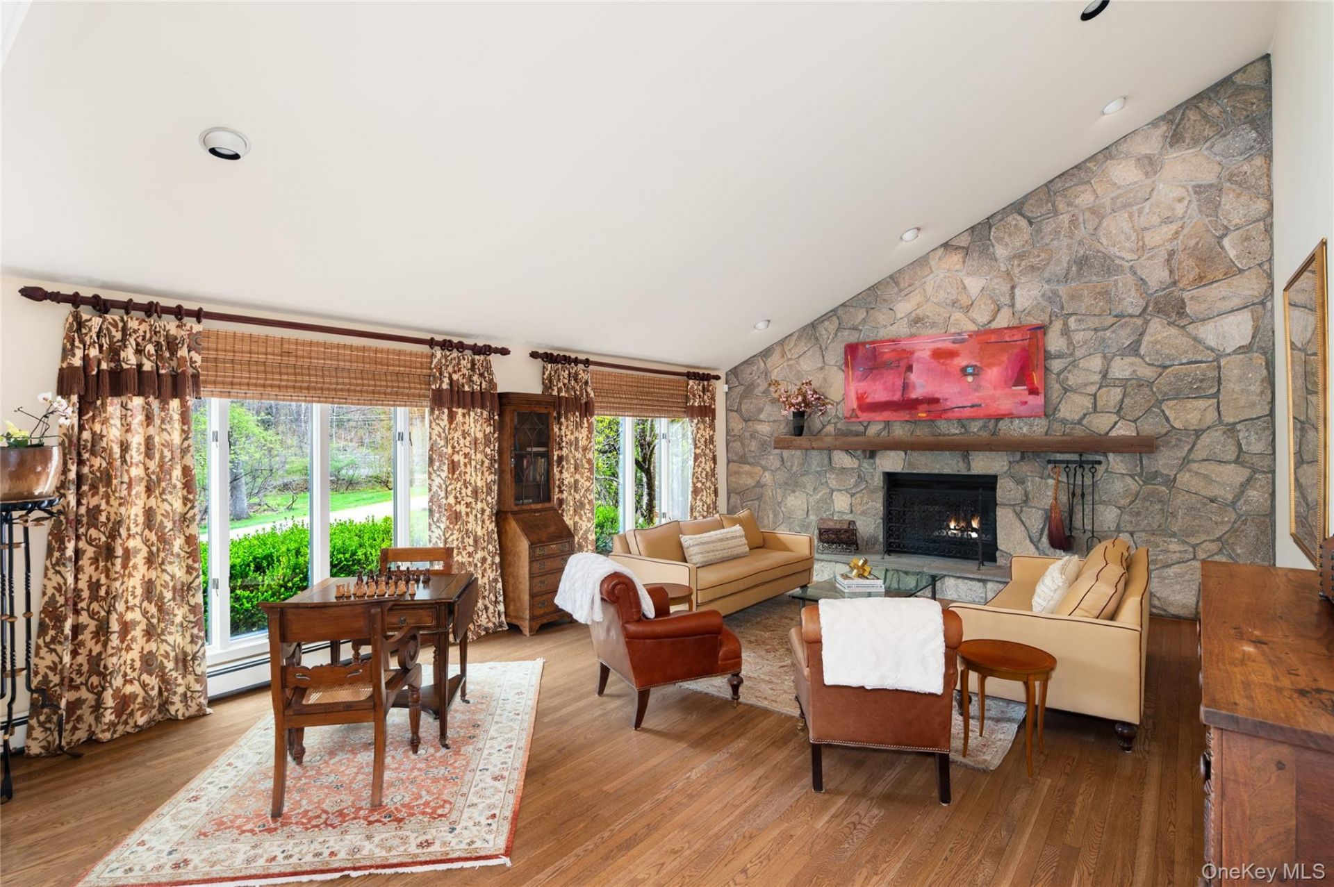 Tucked away on Waccabuc's scenic Post Office Road, this lovingly maintained and stylishly updated 4BR was designed to capture sunlight and celebrate the views of its lushly landscaped and fenced two-acre property. Built in 1985, this is the first time it has been offered for sale. Beyond the automatic gates, a circular drive provides easy guest parking and leads to the sheltered front entrance. Just inside, the open-concept floor plan unfolds from a two-story front gallery perfectly conceived to welcome visitors and showcase art. Bookending this entry hall are a light-filled living room featuring a floor-to-ceiling stone wall anchored by a wood-burning fireplace, as well as a sunny and commodious dining room. The bright and spacious eat-in kitchen-featuring Sub-Zero and Thermador appliances, exceptional prep and serving surfaces, a walk-in pantry and office nook-wraps behind the dining room and opens to a screened porch, mudroom, and family room (with second fireplace). A home office with a private deck and an adjacent full bath complete the first floor.Upstairs, the sun-drenched primary suite boasts views of the property, a walk-in closet, and an updated and beautifully outfitted bath. The second-floor hallway overlooks the front gallery and leads to three delightful bedrooms, a laundry room, and a shared bath. The large, open basement is partially finished and offers flexible use (currently a fitness room), extensive storage opportunities, and a full bath. Outside, a second driveway spur leads to the two-car, attached garage and the showcase backyard. Outdoor entertaining is a breeze here where multi-level decks provide spaces for dining, lounging, socializing, and barbecuing. It's just a few steps down to the stone terrace that surrounds the heated Gunite pool, the gardens, and level lawns. A full-house, automatic generator, as well. Historic Waccabuc, noted as New York's Secret Suburb, offers a true spirit of community. Waccabuc Landowners Council's yearly activities welcome new neighbors.